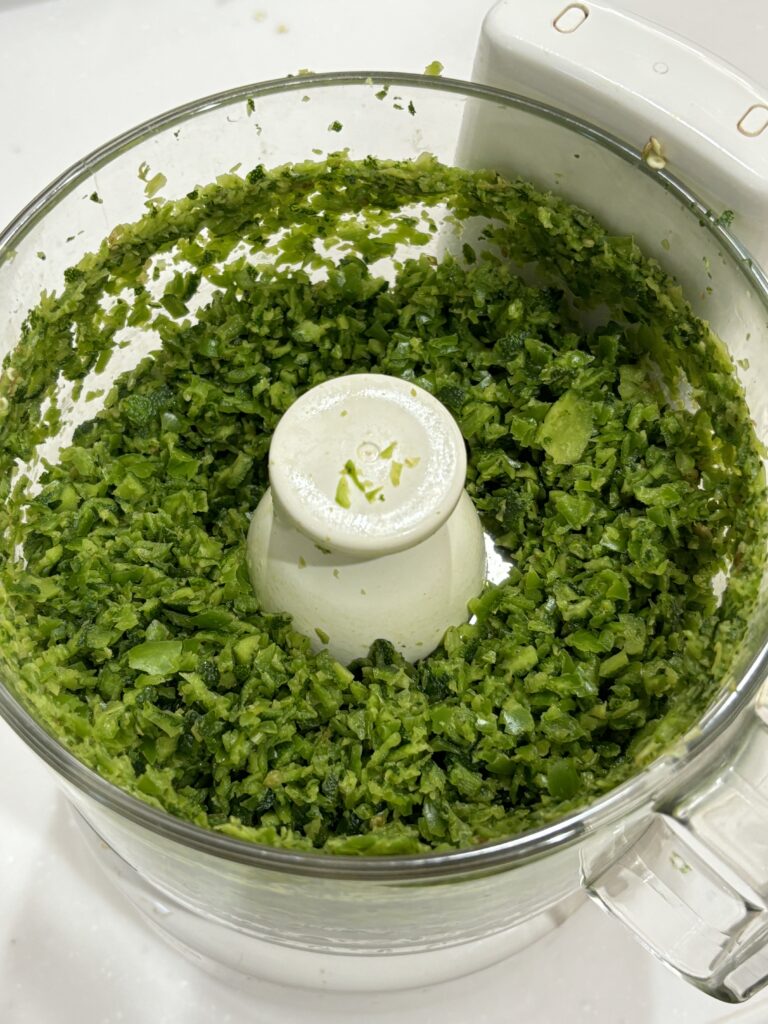 準備ができた柚子皮と青唐辛子をフードプロセッサーに入れてスイッチオン!